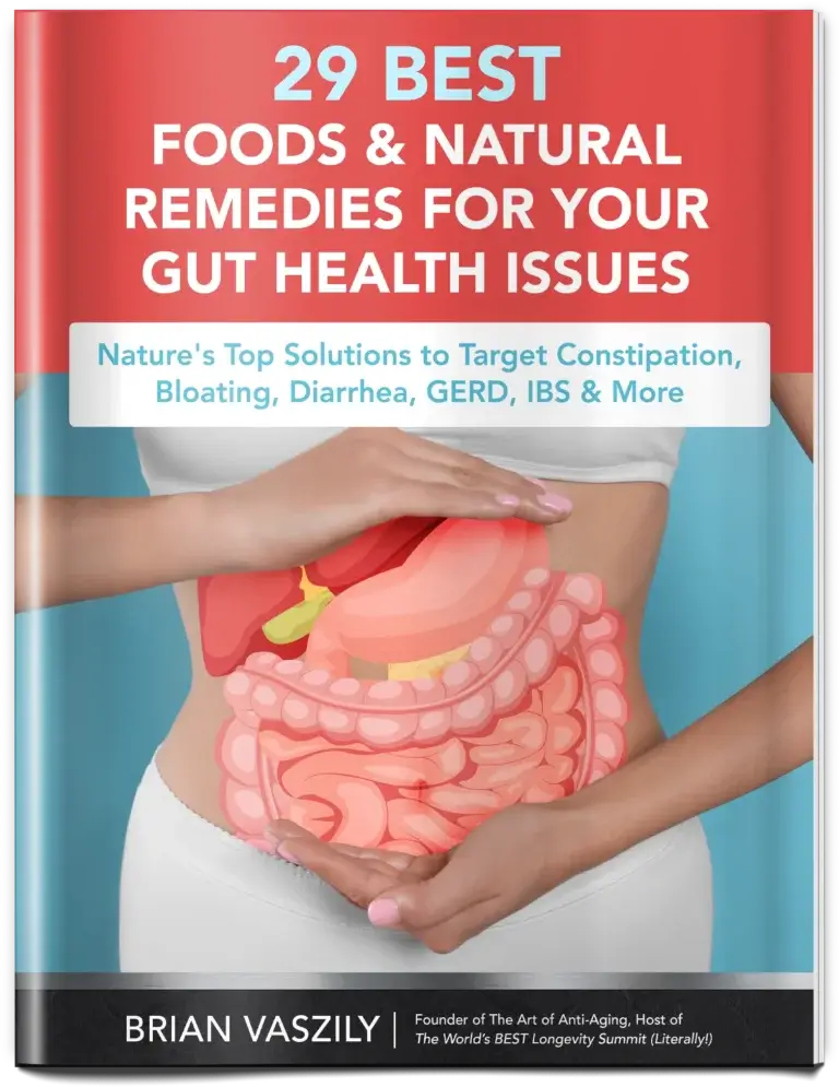 You get the FREE guide emailed to you right now, 29 BEST FOODS & NATURAL REMEDIES FOR YOUR GUT HEALTH ISSUES: Nature’s Top Solutions to Target Constipation, Bloating, Diarrhea, GERD, IBS & More, and FREE access to The World’s BEST Longevity Summit (Literally!).