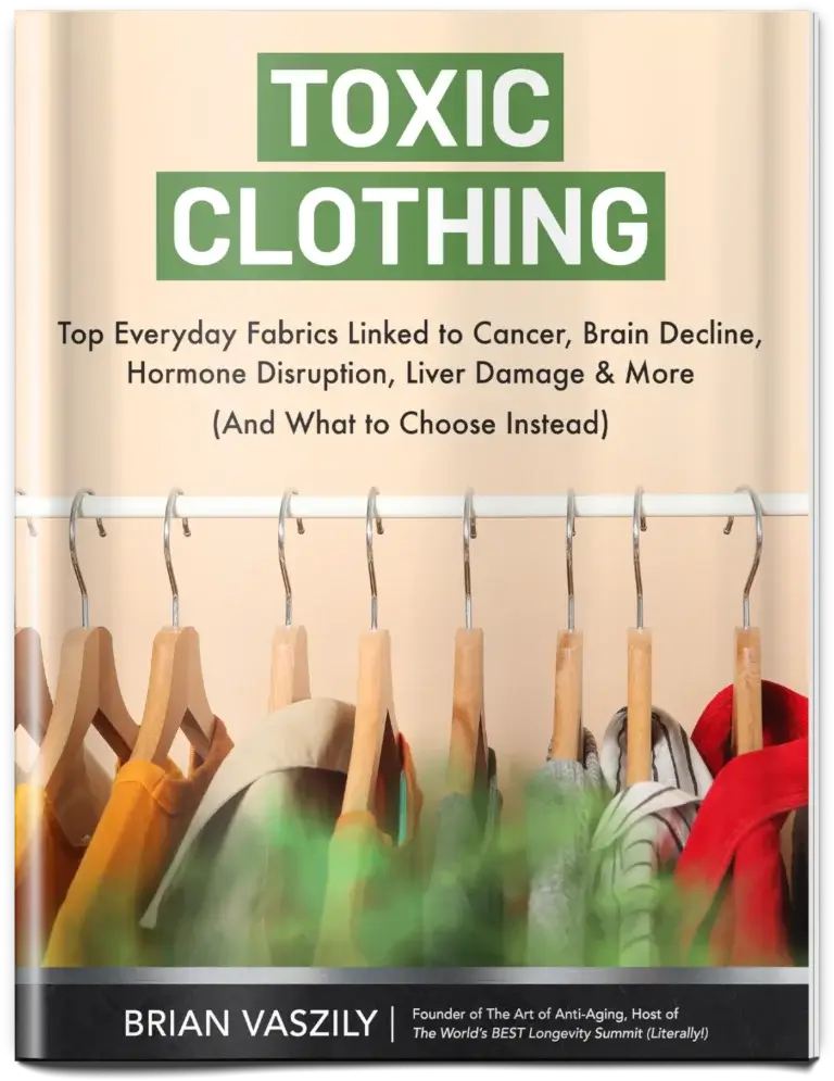 You get the FREE guide emailed to you right now, TOXIC CLOTHING: Top Everyday Fabrics Linked to Cancer, Brain Decline, Hormone Disruption, Liver Damage & More (And What to Choose Instead), and FREE access to The World’s BEST Longevity Summit (Literally!).